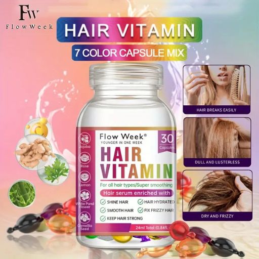 Deeply nourish and strengthen your hair with these vitamin-enriched capsules — ideal for promoting healthy, soft, and manageable hair.